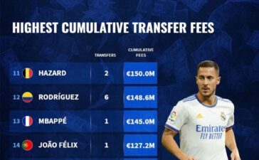 11. Eden Azar (2ta transfer) - 150 million evro12. Xames Rodriges (6ta transfer) - 148,6 million evro13. Kilian Mbappe (1ta...